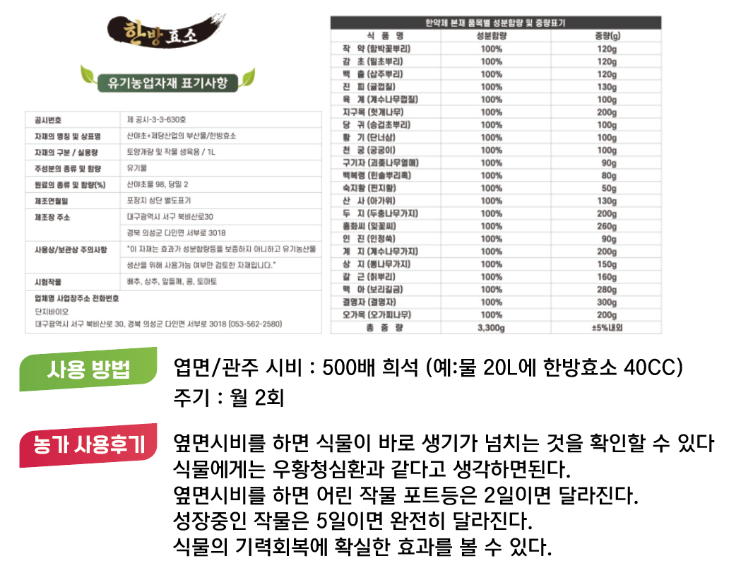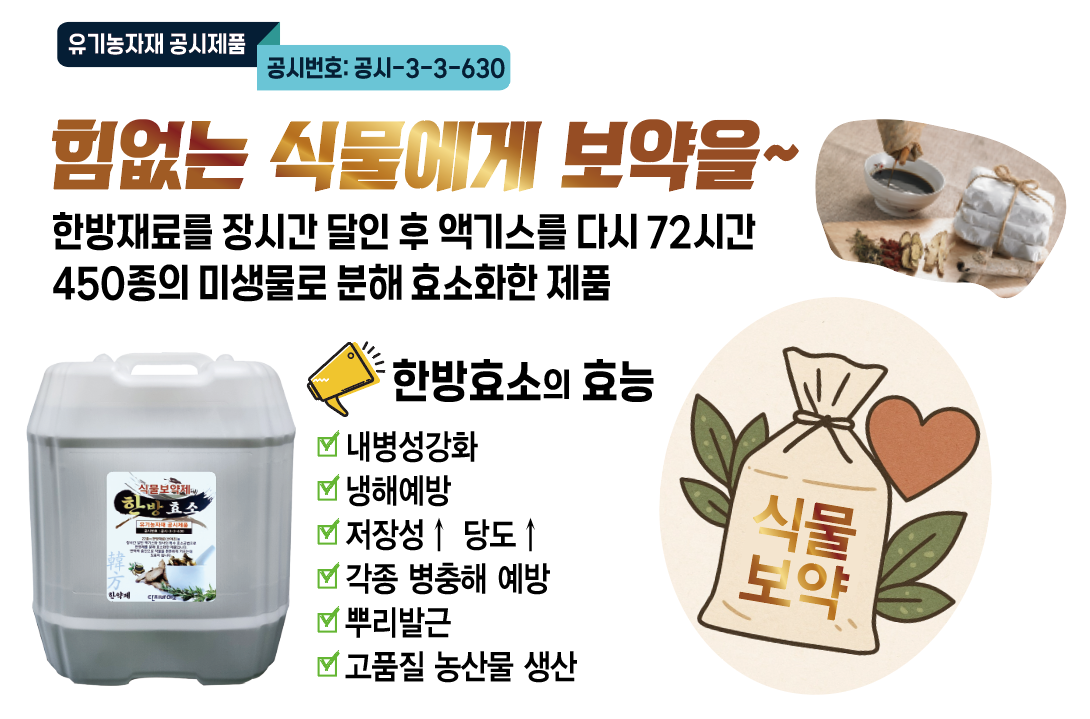 유기농자재 공시등록제품 (쑥쑥튼튼/한방킬/한방효소/쑥쑥황제)