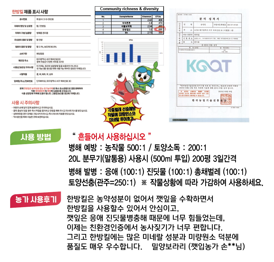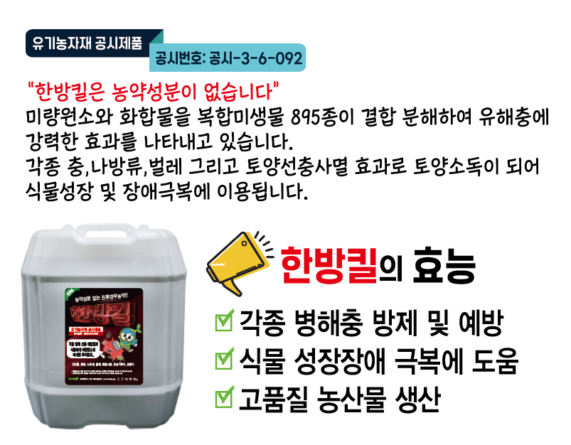 본제 한방킬은 농약성분 없는 유기농자재로