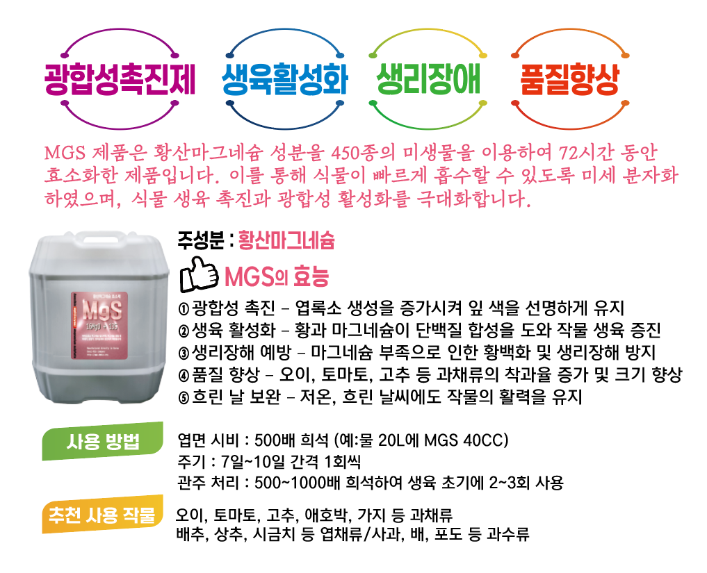 KPS(가리(칼륨) 분해효소로 수확기 옆면또는 관주시비 잎에있는 영양분을 모두 열매로 보내줍니다. )
